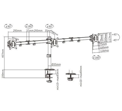 - Suportul poate fi rotit, extins, înclinat și ajustat, oferind astfel flexibilitate maximă în stația dvs. de lucru.