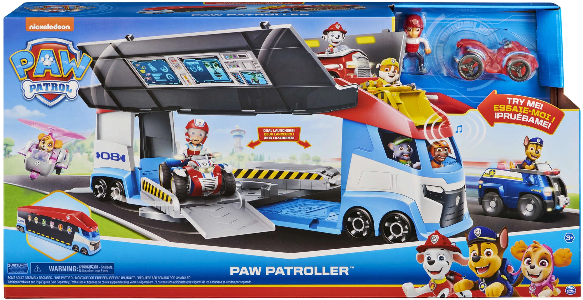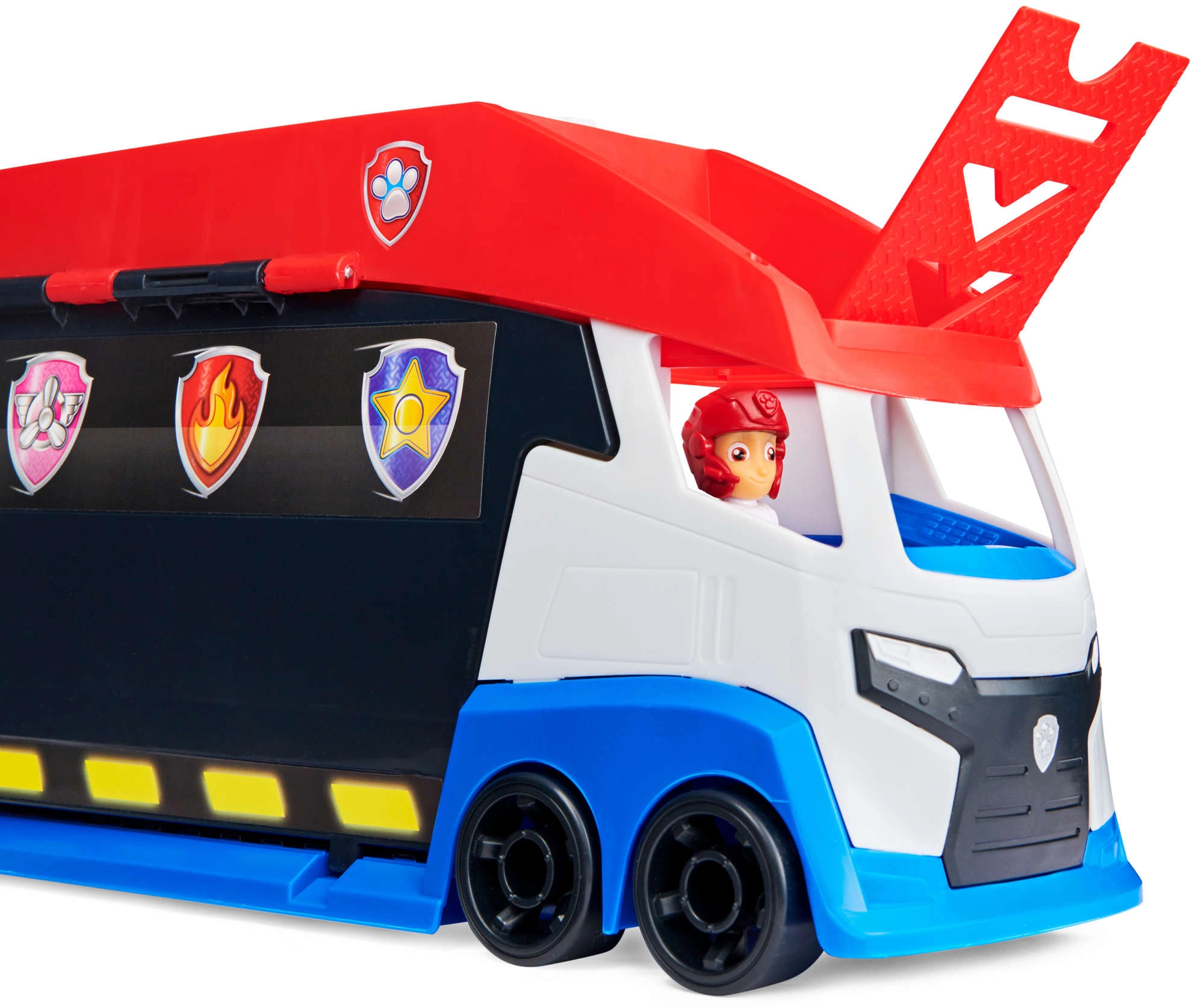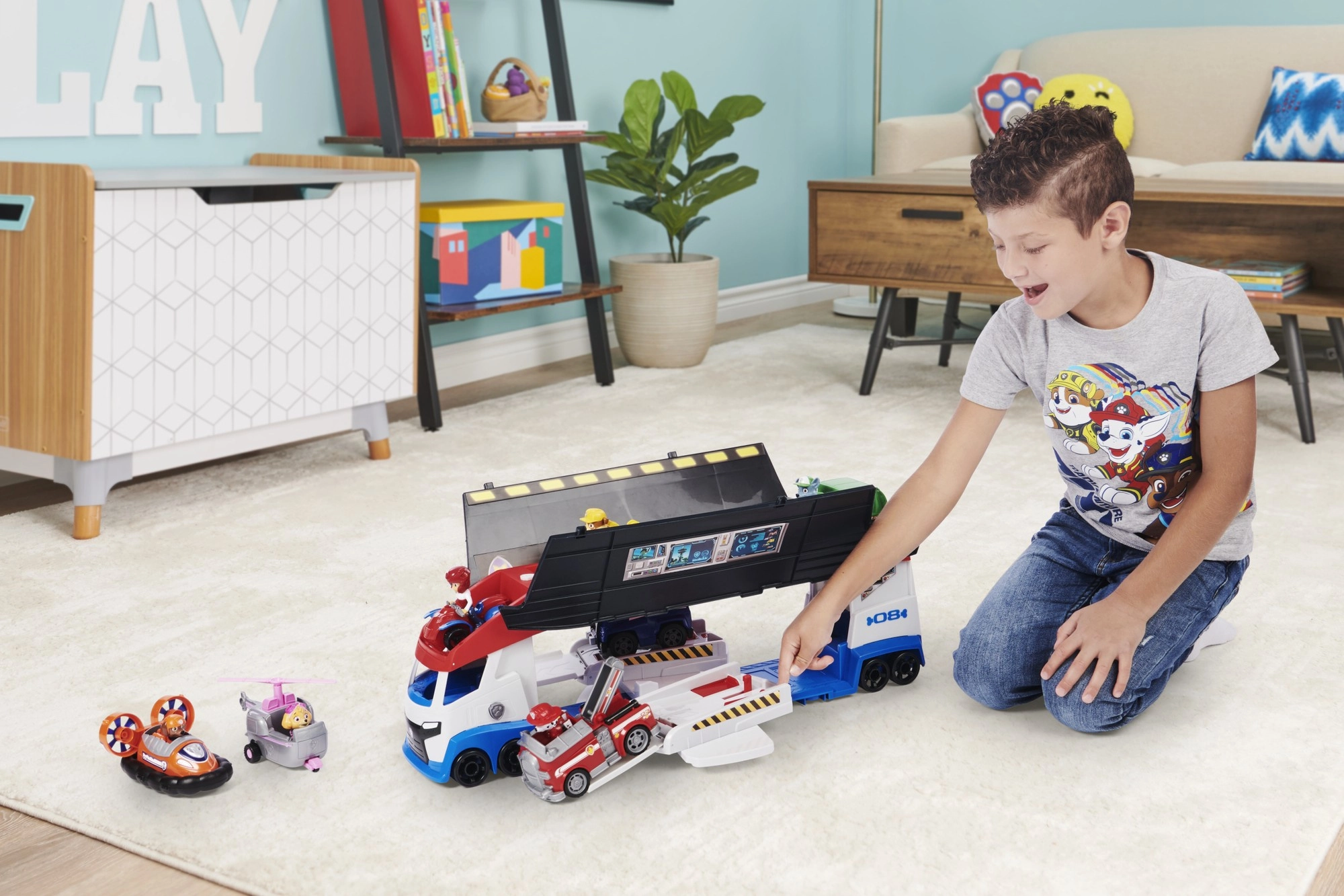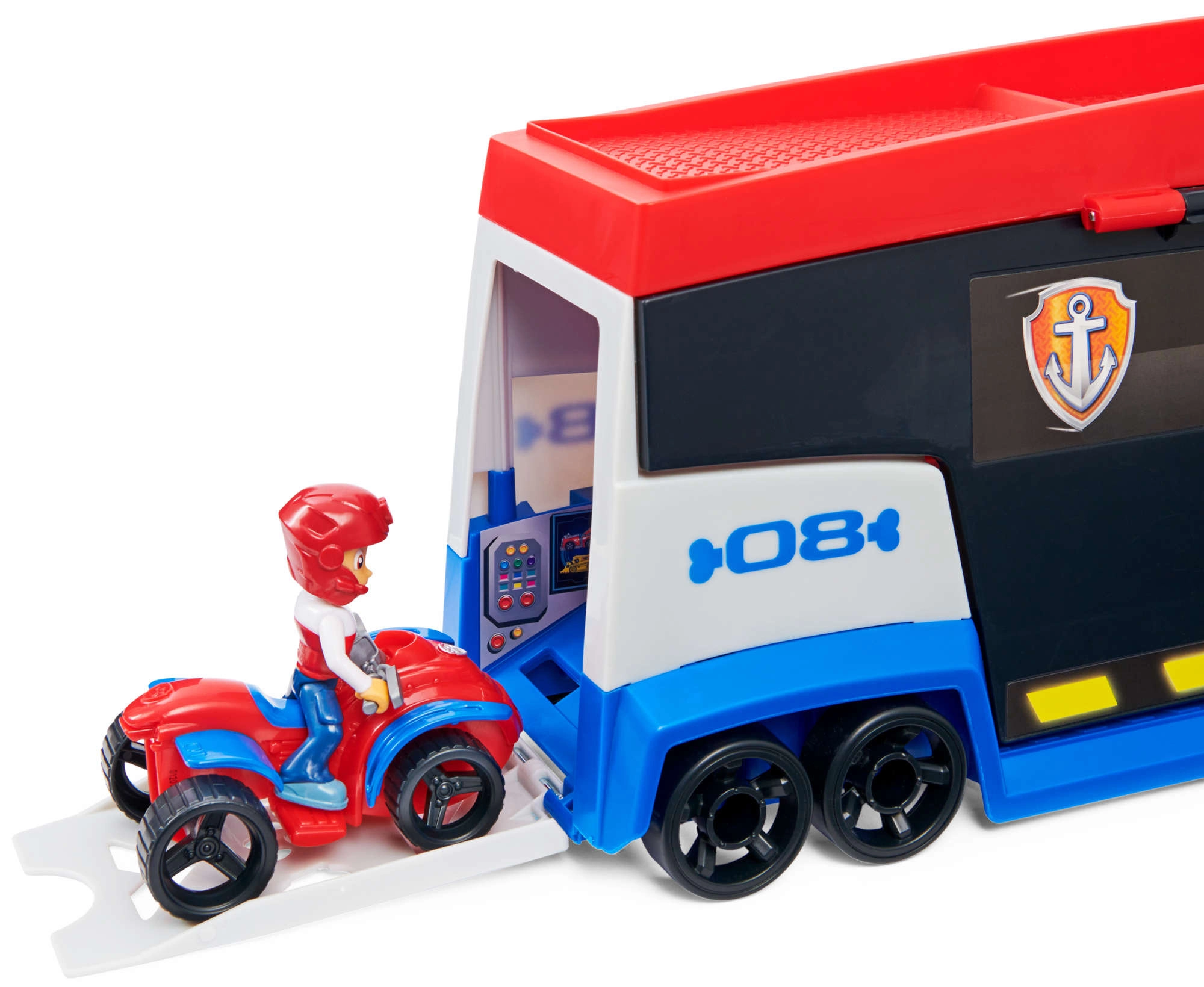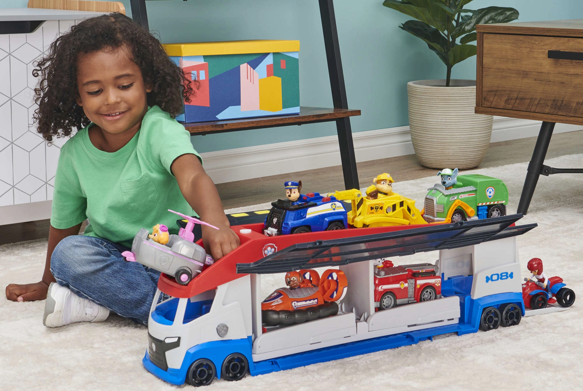Transportorul uriaș inspirat de îndrăgitul serial PAW PATROL îi va încânta pe toți micii salvatori. Datorită panourilor laterale rabatabile și rampelor, camionul se transformă într-un service mobil și un centru de comandă. La apăsarea butonului cu logo-ul lăbuței, se aud sunete realiste de motor, claxon și mers înapoi, care intensifică atmosfera de joc.