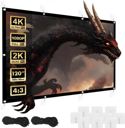 Bucurați-vă de o imagine clară și cinematografică cu ecranul de 120 inch, care este o alegere perfectă pentru spații mai mari. Fie că este vorba de un film, o prezentare sau un meci sportiv, acest ecran permite spectatorilor să se imerseze complet în conținutul afișat.
