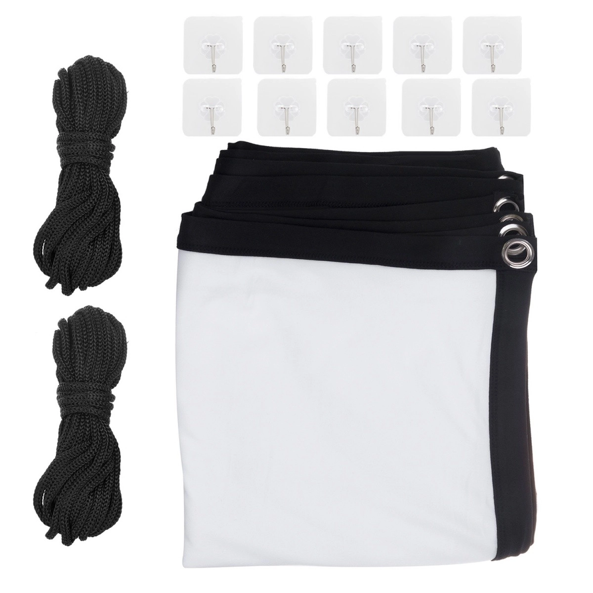 Material poliester durabil și flexibil: Fabricat dintr-un material rezistent, imun la cute și deformări, asigură o suprafață netedă pentru o difuzare uniformă a luminii, oferind o imagine clară și precisă. Ecranul poate fi ușor pliat și depozitat fără riscul apariției pliurilor permanente.