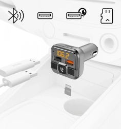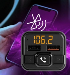 Transmițătorul FM permite transmiterea wireless a semnalului audio de la dispozitive Bluetooth direct la radioul auto. Conectează-ți smartphone-ul sau tableta și ascultă muzica preferată fără a avea nevoie de cabluri.