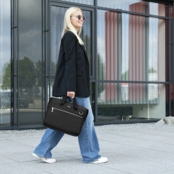 - Buzunarul suplimentar pentru tablete de până la 28 cm (11 inci) permite transportul unui al doilea dispozitiv.