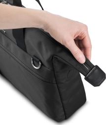 Datorită curelei de fixare pe valiză, geanta este ideală pentru călătorii. Fixarea stabilă pe mânerul valizei facilitează deplasarea prin aeroport sau stație fără greutate suplimentară.