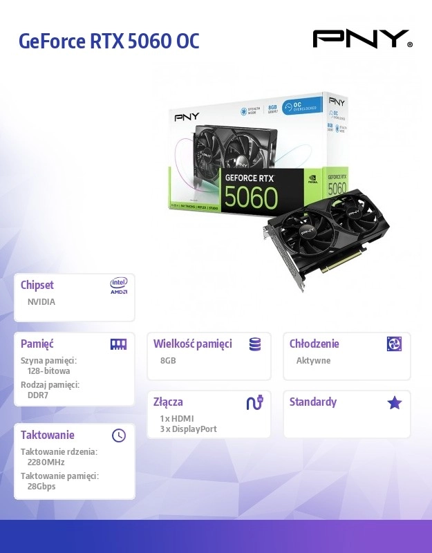 Placa grafică PNY GeForce RTX 5060 oferă jucătorilor și creatorilor o performanță grafică excepțională, care depășește limitele posibilităților. Datorită celei mai noi arhitecturi NVIDIA Blackwell și tehnologiei DLSS 4, vă puteți aștepta la o experiență de joc incredibilă cu grafică captivantă și o frecvență de reîmprospătare ridicată.