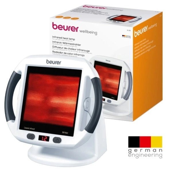 Lampă cu infraroșu Beurer IL 50 este ideală pentru ameliorarea răcelilor și a tensiunilor musculare. Este echipată cu un sistem practic de rulare a cablului și protecție integrată împotriva supraîncălzirii.