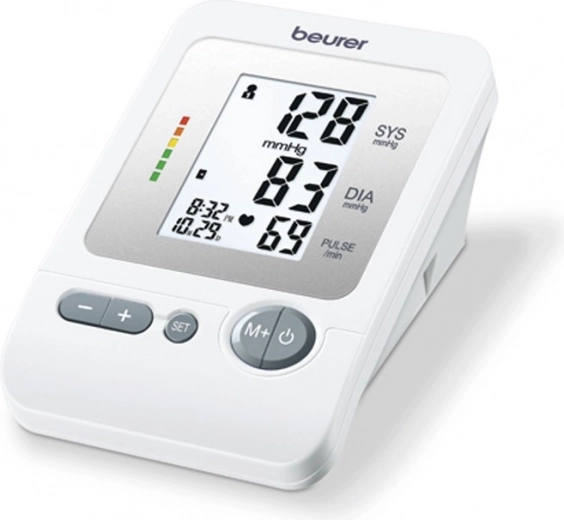 Tensiometru automat BM 26 oferă măsurători precise ale tensiunii arteriale și frecvenței pulsului la braț. Datorită scalei colorate de risc și funcției de detectare a aritmiei, este ideal pentru utilizarea la domiciliu de către până la patru utilizatori.