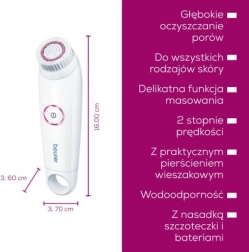 Curățare profundă pentru un ten catifelat: Peria electrică de curățare a feței Beurer asigură o curățare delicată, dar eficientă, care susține totodată circulația sanguină. Cu utilizarea regulată, tenul va arăta mai curat și mai luminos.