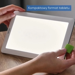 Design compact practic de dimensiuni tabletă (15,6 x 23,6 cm) face această lampă un companion ideal zilnic - acasă, la birou sau în călătorii. La conectare, oferă o doză suplimentară de lumină naturală oricând este nevoie.