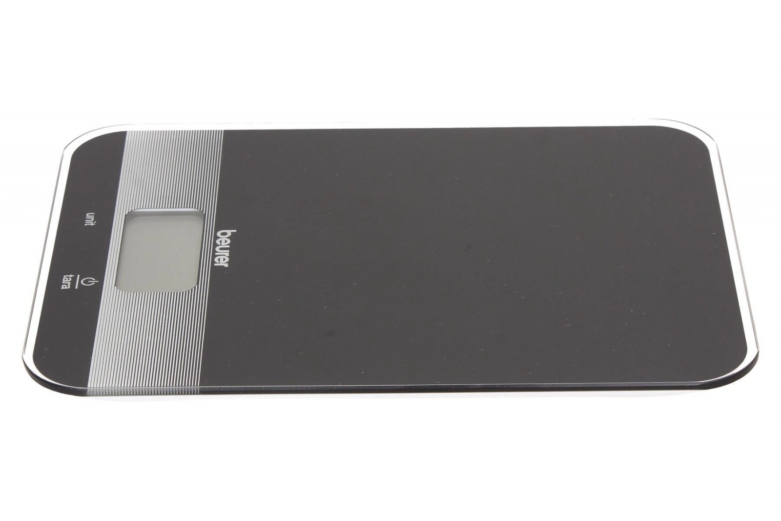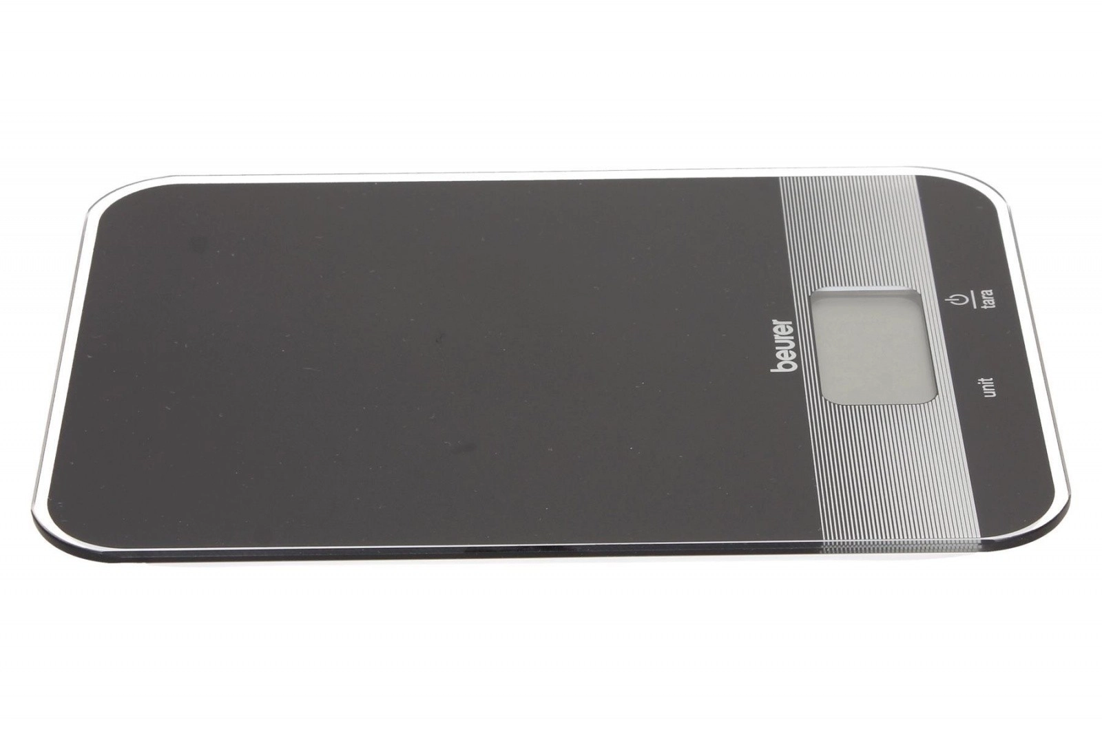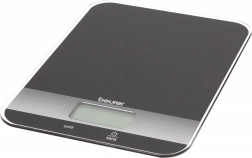 Cântar de bucătărie Beurer în elegantă culoare neagră este echipat cu o funcție practică de completare a greutății și un afișaj LCD ușor de citit. Suprafața de sticlă oferă un aspect modern și ușor de curățat.