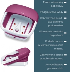 Cadă de relaxare pentru masaj acvatic al picioarelor de la Beurer combină funcțiile de pedichiură, masaj vibrator și menține temperatura apei, oferind astfel alinare și regenerare picioarelor obosite.