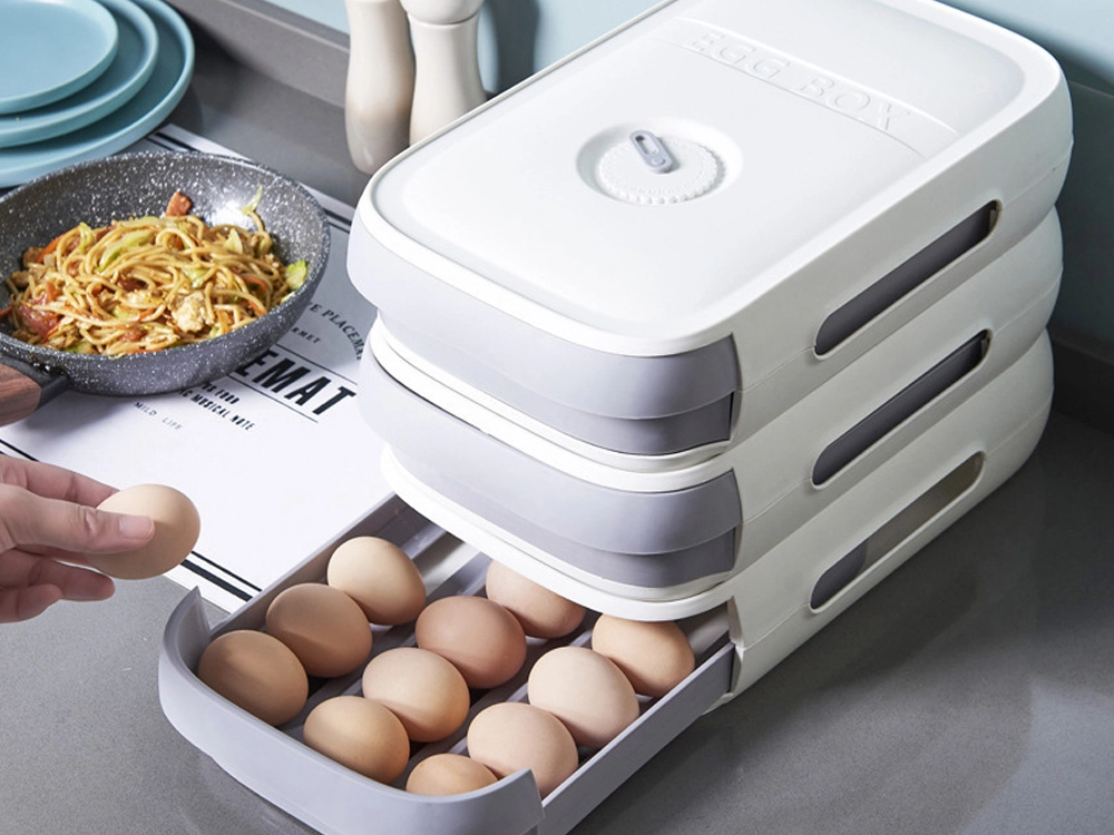 Eleganța și funcționalitatea se împletesc în acest organizer compact și modular pentru ouă. Cu un sertar cu alunecare ușoară, accesul la ouă este rapid și comod. Capacul plat stivuibil permite economisirea spațiului și controlul numărului de ouă prin fereastra laterală practică.