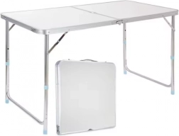 Masa camping pliabilă se desfășoară rapid și, odată pliată, formează o valiză compactă cu mâner comod, permițând o depozitare și transport ușor. Blatul mare de 120 x 60 cm oferă suficient spațiu pentru mâncare, băuturi sau jocuri. Picioarele reglabile pe înălțime permit adaptarea la diferite condiții și preferințe ale utilizatorilor.