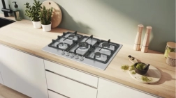 Vă prezentăm plita pe gaz Bosch, care aduce nu doar eleganță, dar și soluții practice pentru gătitul zilnic. Suprafața specială permite spălarea grătarelor din fontă în mașina de spălat vase, facilitând întreținerea și protejându-le de coroziune.