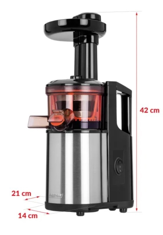 Storcătorul cu rotoare lente este echipat cu un recipient de un litru și un recipient pentru pulpă cu o capacitate de 800 ml, permițând un timp de funcționare îndelungat fără necesitatea de a evacua și spăla frecvent recipientele. Funcționarea silențioasă a dispozitivului permite utilizarea acestuia în orice moment al zilei, fără a deranja alți membri ai gospodăriei. De asemenea, are o funcție REVERSE care permite motorului să funcționeze în direcția opusă. Folosiți această funcție mai ales la stoarcerea citricelor, unde membranele și fibrele pot înfunda găurile sitei.