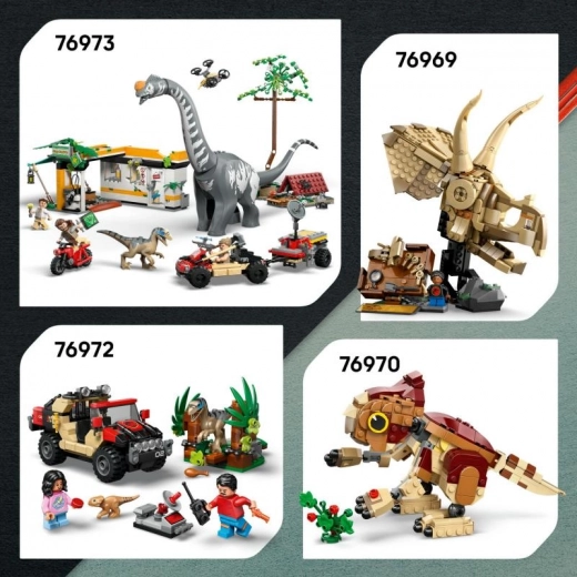 Setul include 4 minifigurine (Martin Krebs, Zora Bennett, Duncan Kincaid și dr. Henry Loomis), elicopter, camion off-road, echipamente de laborator și numeroase accesorii, inclusiv un container și seringi pentru scenarii de joc. Cu aplicația LEGO Builder poți mări modelele, le poți roti în 3D și poți urmări progresul construcției.