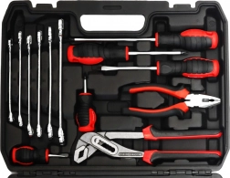Bucurați-vă de fiabilitate și confort cu acest set de unelte BauerKraft versatil, ideal pentru meșteri amatori și profesioniști. Conține tot ce aveți nevoie pentru reparații și asamblări - de la mobilier la instalații electrice minore. Designul cu compartimente conturate exact menține toate uneltele la locul lor și facilitează organizarea.