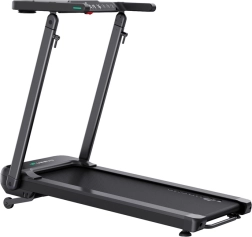 Panoul LED afișează clar viteza, timpul, distanța și caloriile. Suportul integrat/standul pentru tabletă ușurează munca și divertismentul în timpul mersului. Construcția pliabilă și roțile de transport permit depozitarea rapidă după antrenament, astfel încât banda să nu ocupe mult spațiu.
