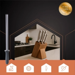 Masatul diamantat RUHHY este un ajutor de neprețuit pentru ascuțirea regulată a cuțitelor, menținându-vă uneltele în condiție perfectă. Mânerul ergonomic și tijă de oțel asigură utilizare confortabilă și durabilă, făcându-l ideal pentru bucătăria profesională și cea de acasă.