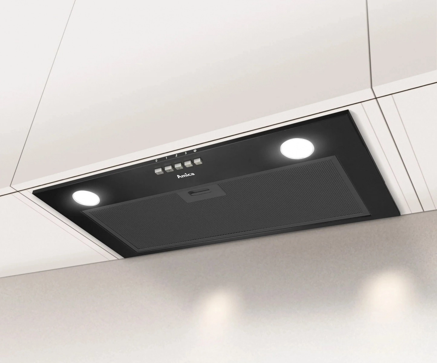 Hota de bucătărie neagră, stilată, oferă o ventilare eficientă a aburilor din bucătăria ta. Design modern și performanță înaltă sunt ideale pentru utilizarea zilnică.