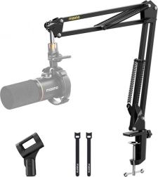 Suportul pentru microfon Maono este fabricat din oțel de înaltă calitate , ceea ce permite fixarea în siguranță a microfoanelor, susținând o greutate de până la 1 kg. Cele două brațe de 33 cm lungime permit reglarea ușoară și precisă a poziției.