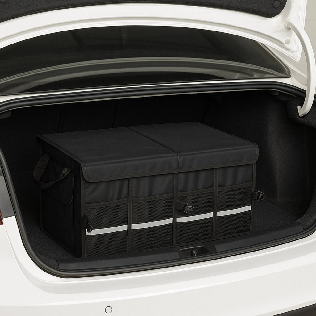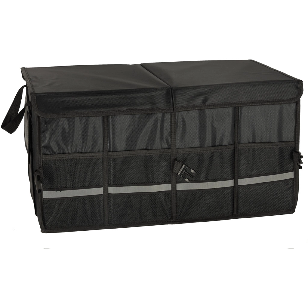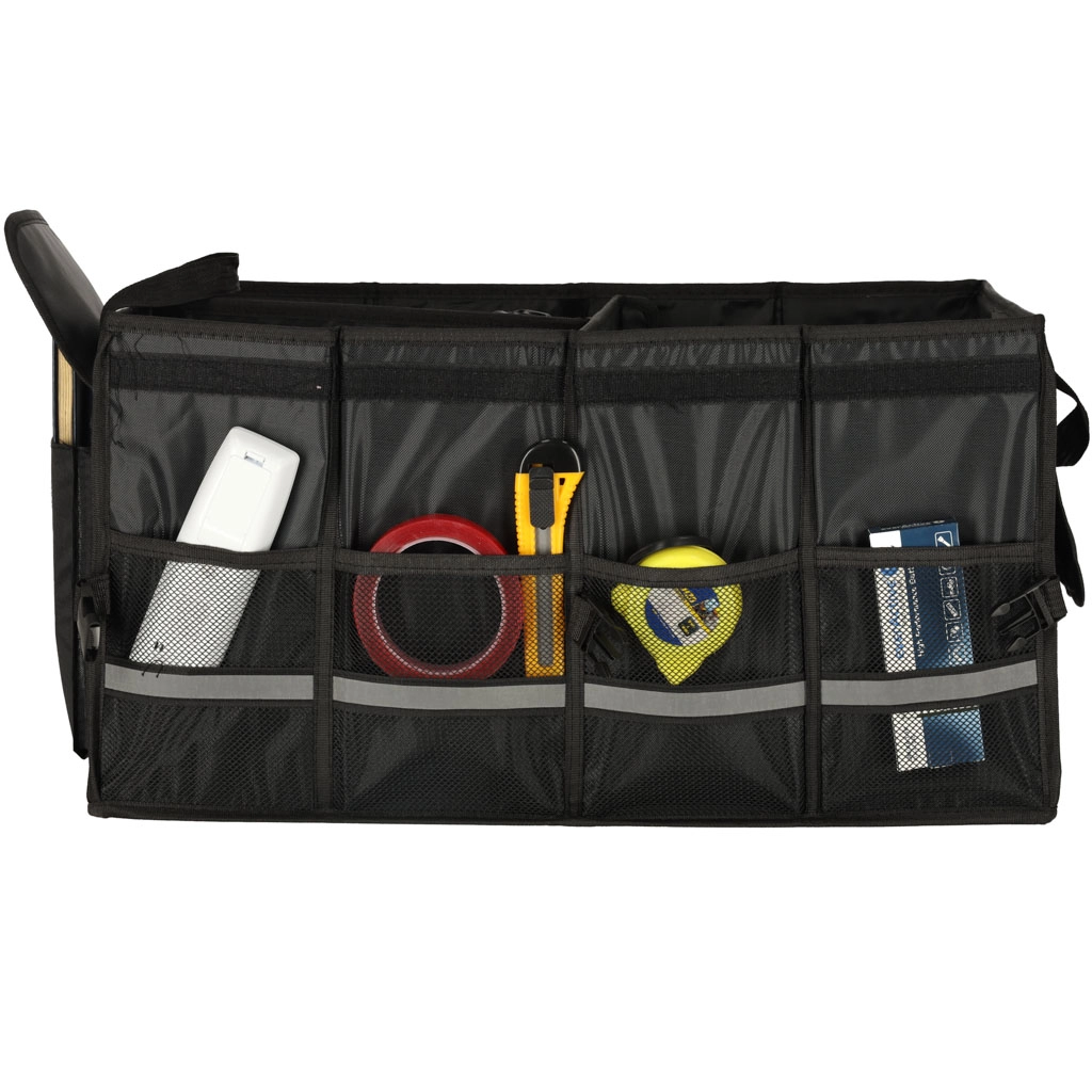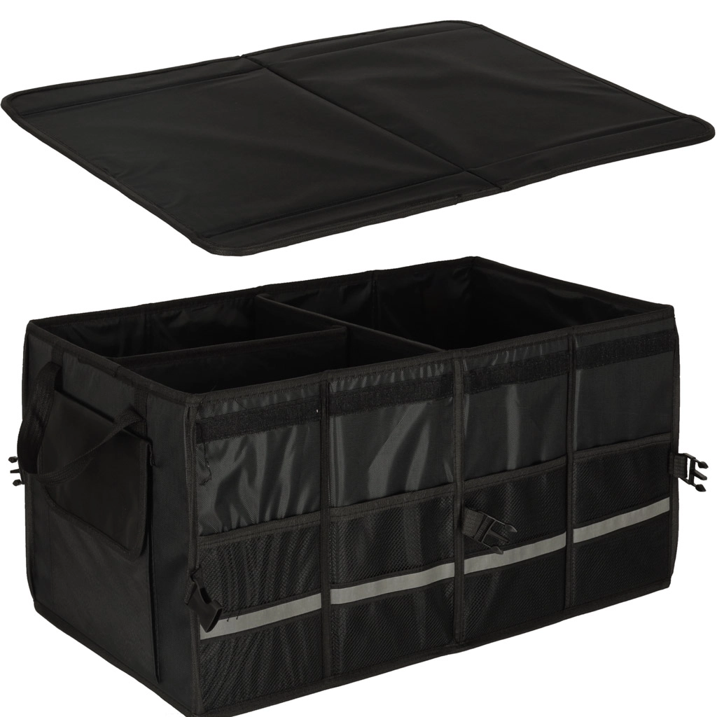 Păstrați portbagajul mașinii ordonat și organizat cu acest organizator robust. Fabricat din țesătură Oxford din poliester rezistent, rezistentă la rupere. Culoarea neagră asigură versatilitatea utilizării în toate tipurile de vehicule.