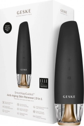 Geske împotriva îmbătrânirii și regenerării pielii 9în1 este un dispozitiv de masaj pentru față, care se conectează cu aplicația GESKE Beauty Tech și oferă tratamente personalizate. Oferă funcții precum MicroCurrent Pro Face-Lift, Full-Spectrum Power-LED Light, și Advanced RF Heated Wavelengths.