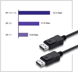 Cablu DisplayPort 1.4 reprezintă un progres tehnologic care permite lățimea de bandă de 32,4 Gb/s, ceea ce permite suport pentru 8K la 60 Hz (doar cu DSC). Chiar și fără DSC, oferă o calitate mai bună a imaginii datorită HDR. Capacitatea sa multi-streaming suportă mai multe monitoare cu un singur cablu.