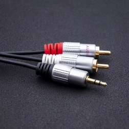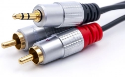 Cablu Qoltec 2x RCA - 3.5mm Jack permite transferul semnalului audio între smartphone, player MP3, calculator și alte dispozitive audio cu conector RCA. Conectorii placat cu aur asigură o calitate superioară a sunetului și protecție împotriva coroziunii.