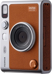 Pielea ecologică maro, accentele argintii și comenzile tactile oferă aparatului Instax mini Evo un aspect unic și o priză confortabilă pentru fotografiere pe tot parcursul zilei.