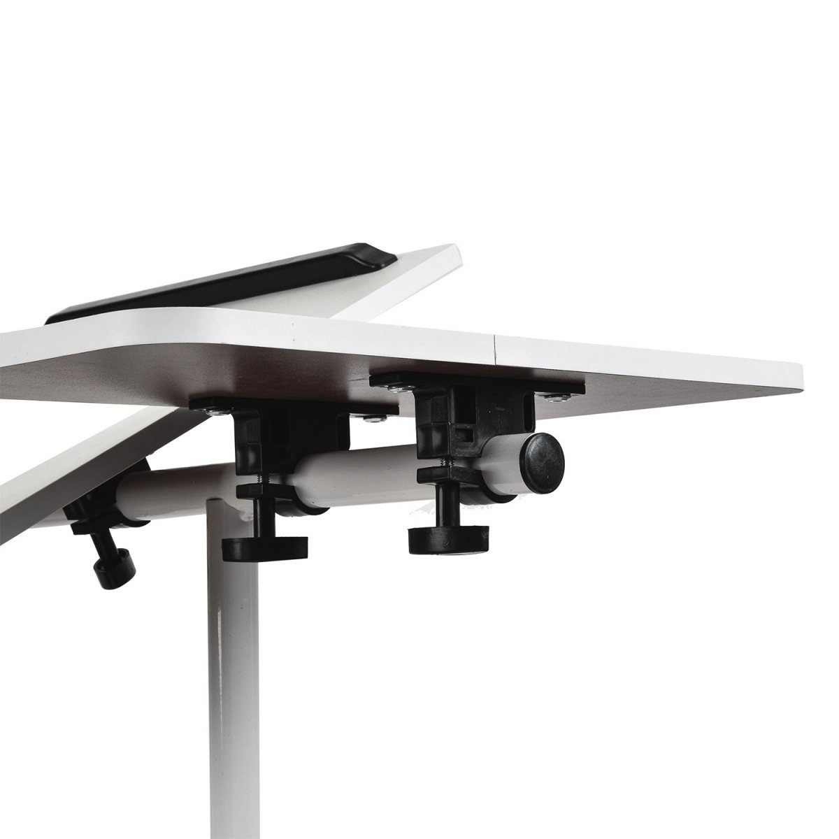 Măsuța este echipată cu patru roți pentru deplasare ușoară și două mecanisme de blocare pentru stabilitate. Aceasta asigură că măsuța rămâne pe loc chiar și la un unghi mare de înclinare, oferind un mediu de lucru mobil perfect.