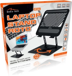 Rotire 360°, ajustare, prezentare! Suportul nu doar oferă stabilitate, dar și mobilitate deplină cu o platformă rotativă de 360°, permițând o schimbare rapidă a unghiului de vizualizare, afișarea ecranului colegilor sau vizionarea confortabilă a filmelor.