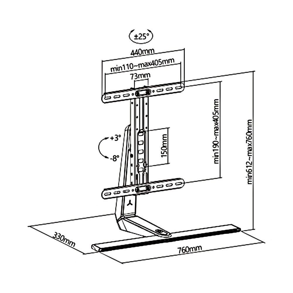 Compatibilitate: Suportul este potrivit pentru monitoare de mărci precum Sony, LG, Samsung, Philips, Sharp, Panasonic, Toshiba și altele. Oferă o montare ușoară pentru monitoare conform standardului VESA: 200x200, 300x200, 300x300, 400x200, 400x300, 400x400.