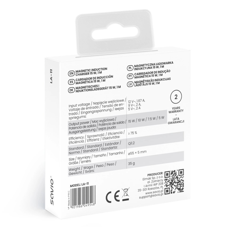 Compatibilitate cu Qi și MagSafe: Folosind standardul Qi 1.2, încărcătorul Savio LA-11 suportă cu ușurință încărcarea wireless cu inducție. Sistemul de magneți încorporat este ideal pentru dispozitivele cu funcția MagSafe, garantând o conectare stabilă și precisă.