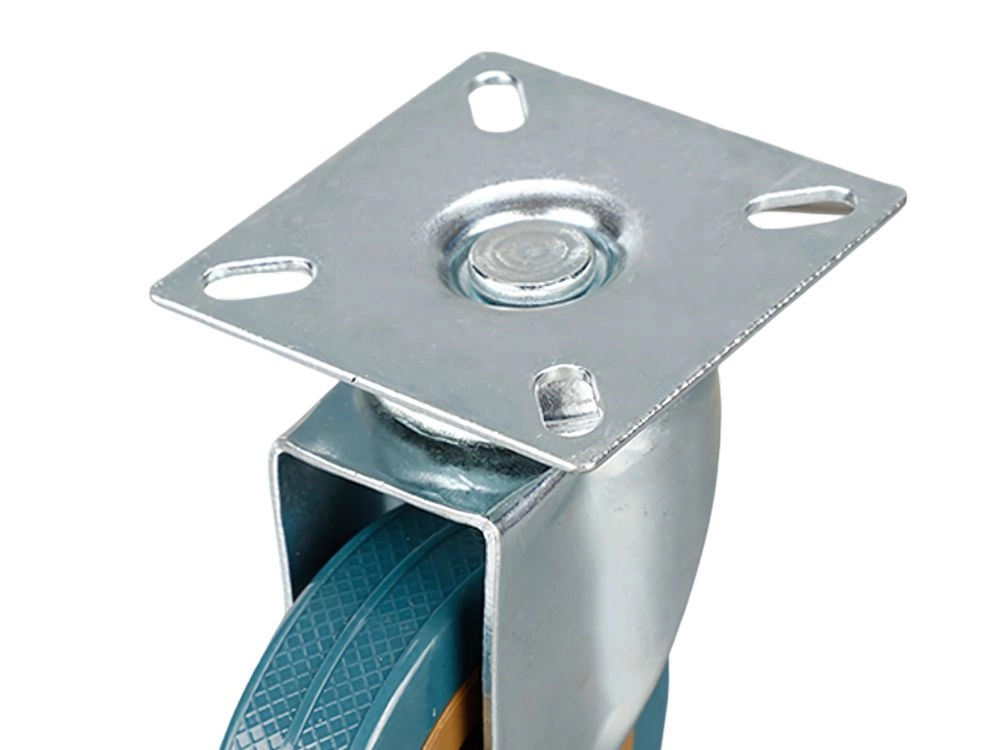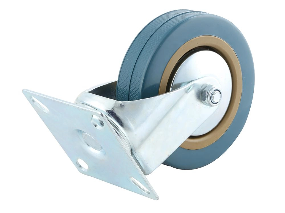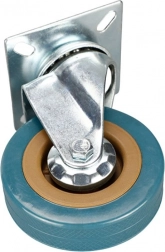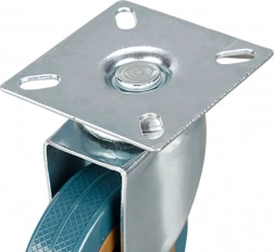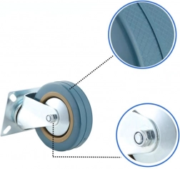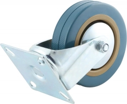 Fabricat din oțel galvanizat și acoperit cu cauciuc tehnic de calitate, asigurând amortizarea vibrațiilor și protecția podelei. Roata este potrivită pentru utilizare pe diferite suprafețe și este ușor de instalat datorită plăcii de montare robuste.
