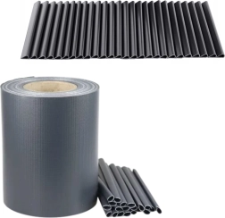 Bandă de gard din grafit cu lățimea de 19 cm și lungimea de 35 de metri este ideală pentru protejarea gardului panou. Este fabricată din PVC de înaltă calitate, întărit cu plasă de poliester, rezistentă la rupere, radiații UV și apă. Banda include atestat PZH și certificat TÜV SÜD, asigurând siguranța și respectarea normelor.