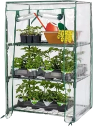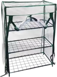 Această seră mică este perfectă pentru utilizare pe balcon, terasă sau într-o grădină mică. Echipată cu trei rafturi practice și cu închidere frontală cu fermoar, care poate fi ușor rulată pentru acces facil în interior. Datorită dimensiunilor de 46 x 24 x 80 cm, este stabilă și în același timp economisitoare de spațiu.