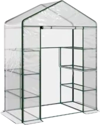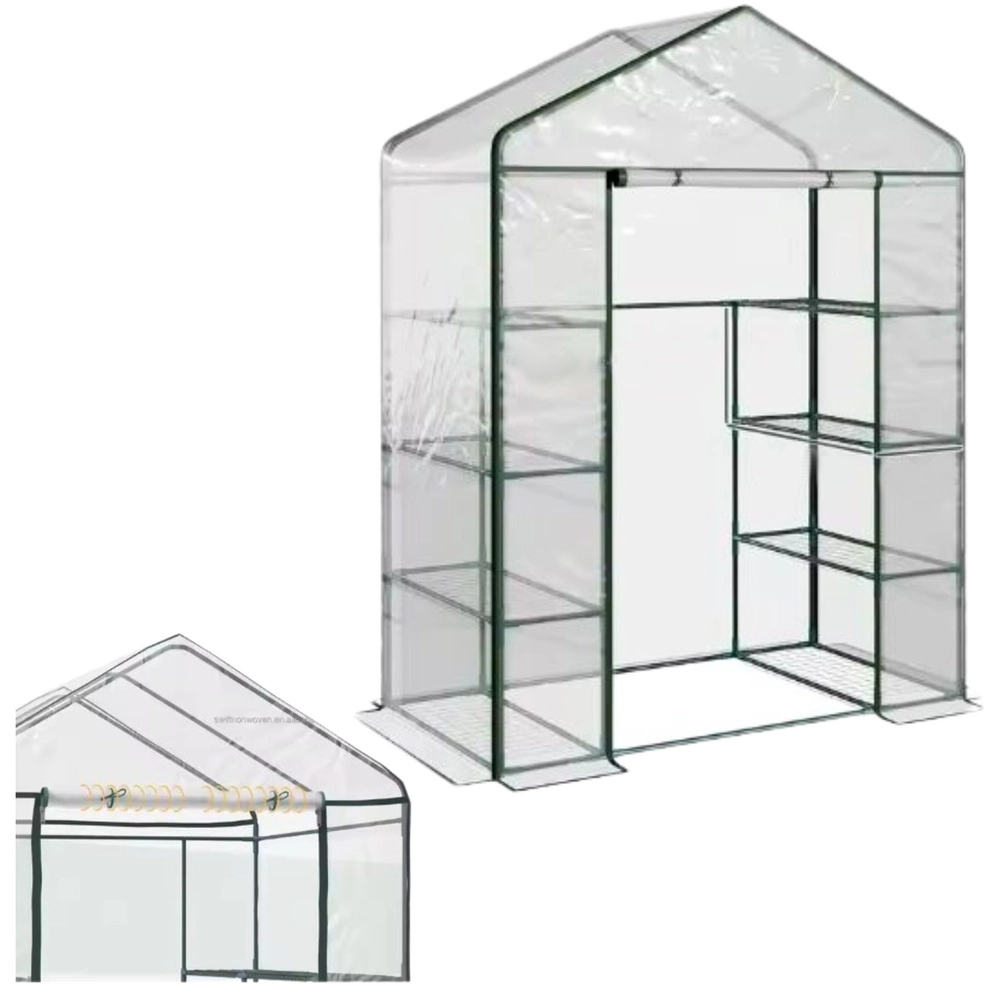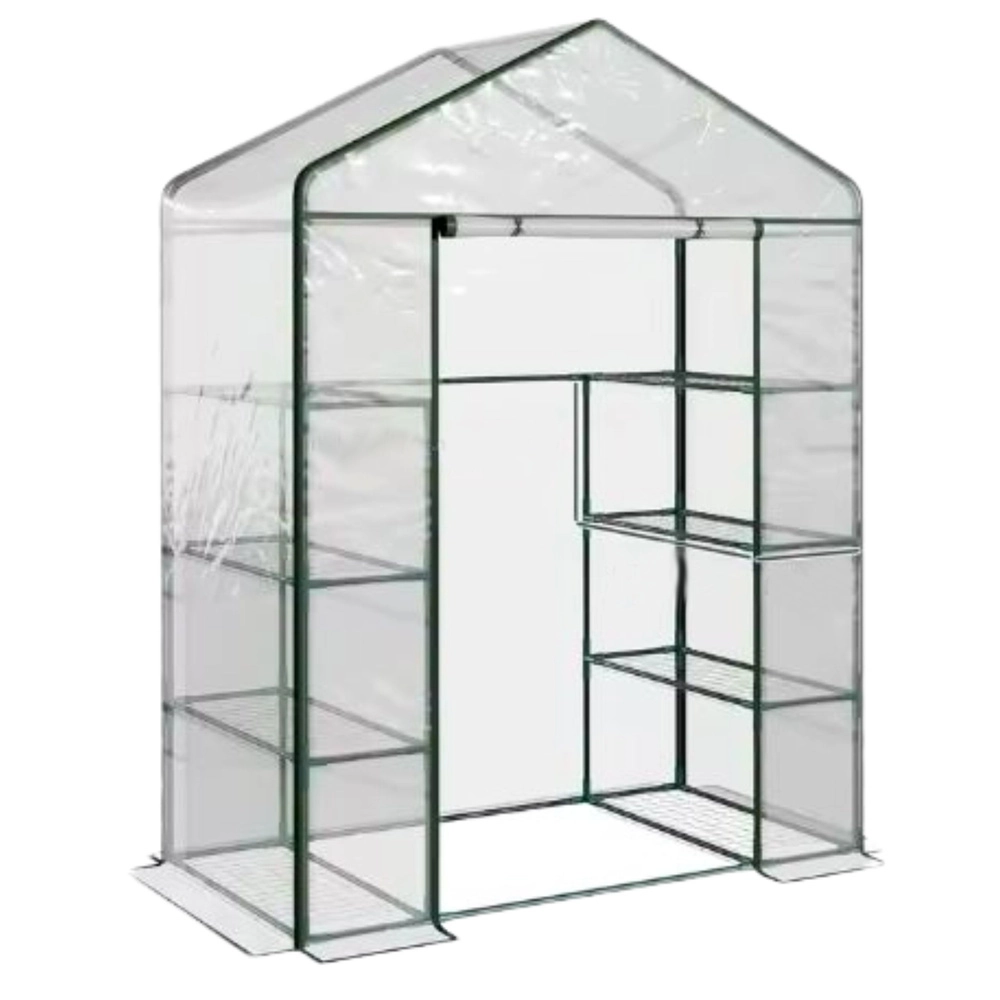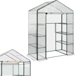 Modelul include 4 rafturi laterale și 2 spații libere la nivelul solului, oferind posibilitatea depozitării ghivecelor înalte sau pentru cultivarea plantelor cățărătoare. Ușile cu fermoar practice facilitează accesul în interior, iar structura cu conectori tip „T” permite o asamblare rapidă și intuitivă, fără a folosi unelte.