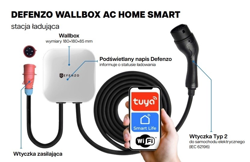Stația de încărcare Defenzo Wallbox Home AC11 este un dispozitiv compact și elegant, protejat de un înveliș robust alb cu un grad de protecție IP54, garantând rezistență la condițiile meteorologice și la deteriorări mecanice. Prin aplicațiile mobile Tuya sau Smart Life poți: