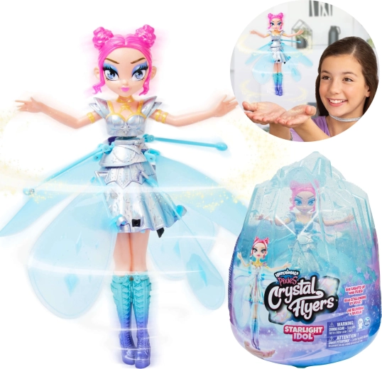 Zâna zburătoare Hatchimals Pixies este adăpostită într-o casetă-cristal sclipitoare, care servește drept bază elegantă și capac de depozitare. După pornire, zâna se ridică cu ajutorul aripilor rotative și reacționează sensibil la poziția mâinilor – când le ții mai jos, coboară, când sunt mai sus, urcă. Printr-o simplă atingere a aripilor, închei zborul în siguranță.
