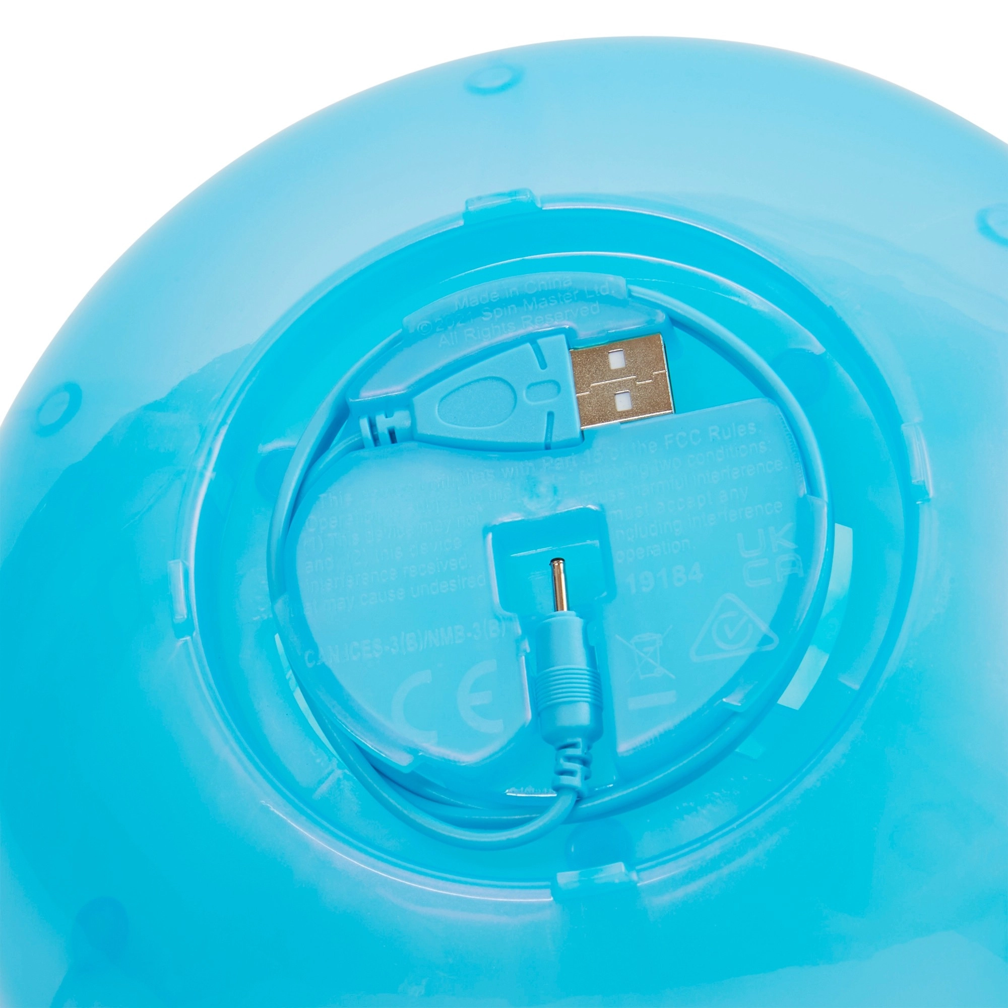 Încarcă jucăria ușor prin USB și păstrează cablul mereu la îndemână datorită spațiului de stocare integrat în bază.