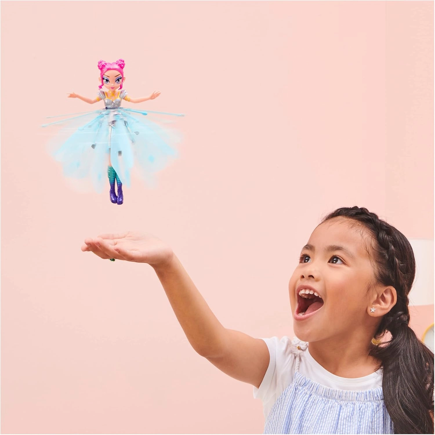 Zâna Pixies, odată pornită, se înalță și reacționează inteligent la înălțimea palmelor tale. Controlează zborul intuitiv – fără butoane și setări complicate.