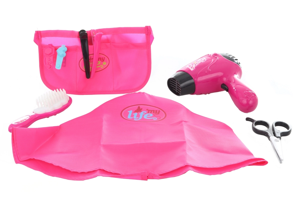 Datorită borsetei practice, copiii au toate instrumentele la îndemână, iar pelerina de tuns adaugă autenticitate jocului. Setul este conceput pentru utilizare sigură pentru copii, iar datorită dimensiunilor compacte se depozitează și se transportă ușor.