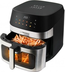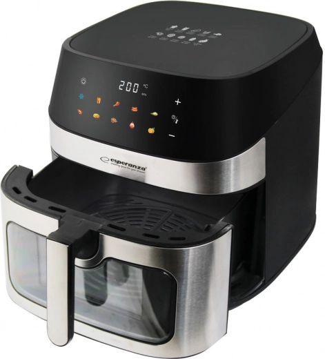 Această friteuză fără ulei cu capacitate de 8 litri este perfectă pentru pregătirea meselor pentru întreaga familie. Dispune de un panou de control intuitiv cu pictograme colorate și 10 programe prestabilite, inclusiv meniuri pentru fructe și decongelare, asigurând o operare confortabilă și setări precise ale parametrilor de coacere.