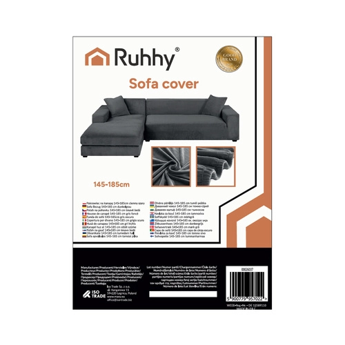 Husa marca RUHHY din velur moale și elastic este soluția ideală pentru protejarea și reîmprospătarea canapelei de colț cu șezlong. Se potrivește perfect mobilierului, nu alunecă și oferă interiorului un aspect confortabil și elegant. Culoarea gri închis este universală iar dimensiunea de 145 - 185 cm este potrivită pentru majoritatea canapelelor de colț standard.