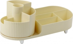 Organizatorul rotativ este echipat cu un mecanism rotativ de 360°, care asigură acces rapid și ușor la conținut. Este ideal ca suport pentru pensule de machiaj, rujuri, corectoare, flaconuri de parfum, dar și ca organizator pentru creioane, foarfece, markere, evidențiatoare, cleme sau alte accesorii mici de birou.