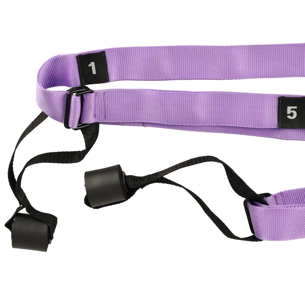Buclele numerotate și cataramele îți permit să modifici instant lungimea în funcție de exercițiu și de înălțimea corpului. Ancorarea stabilă asigură un antrenament sigur acasă și la studio.