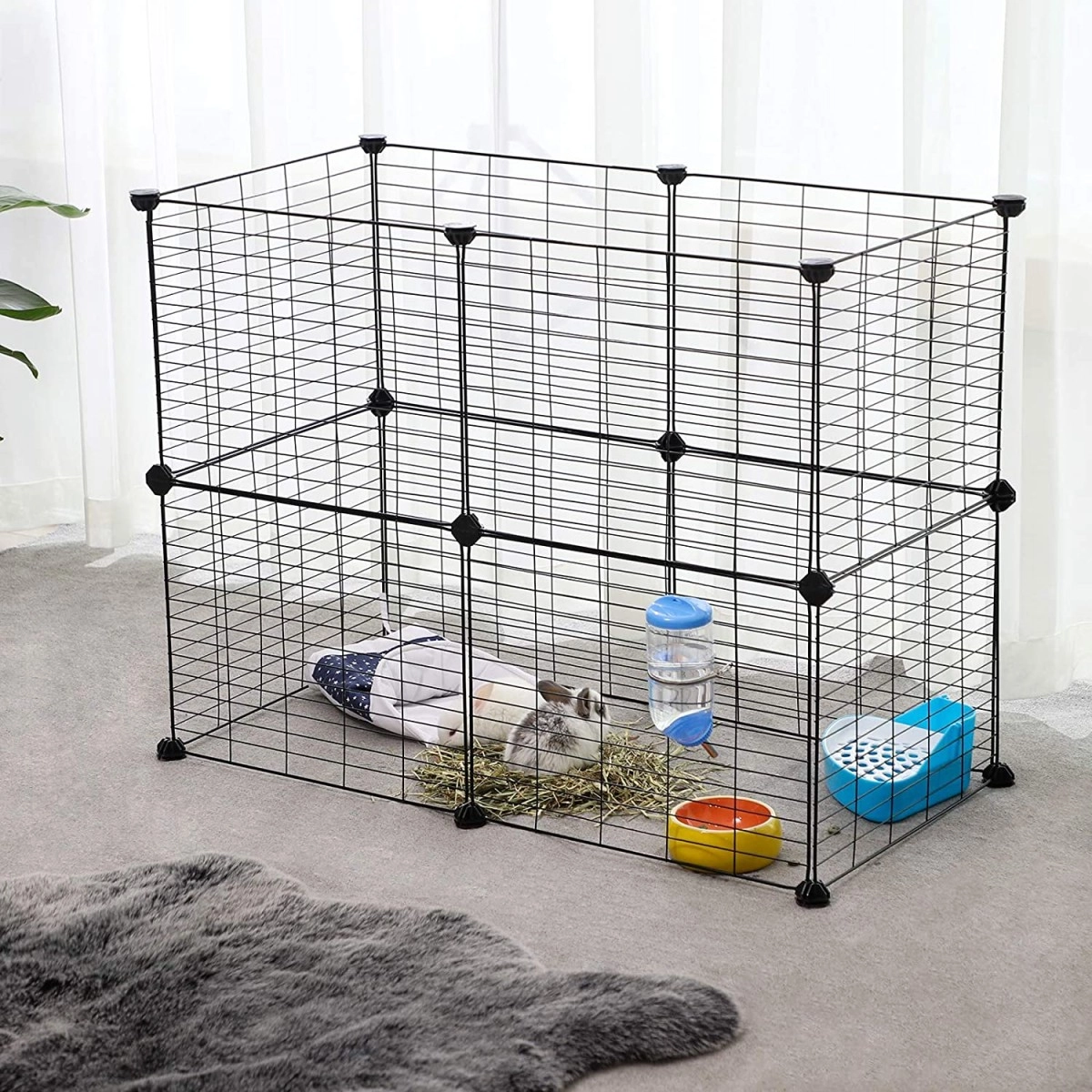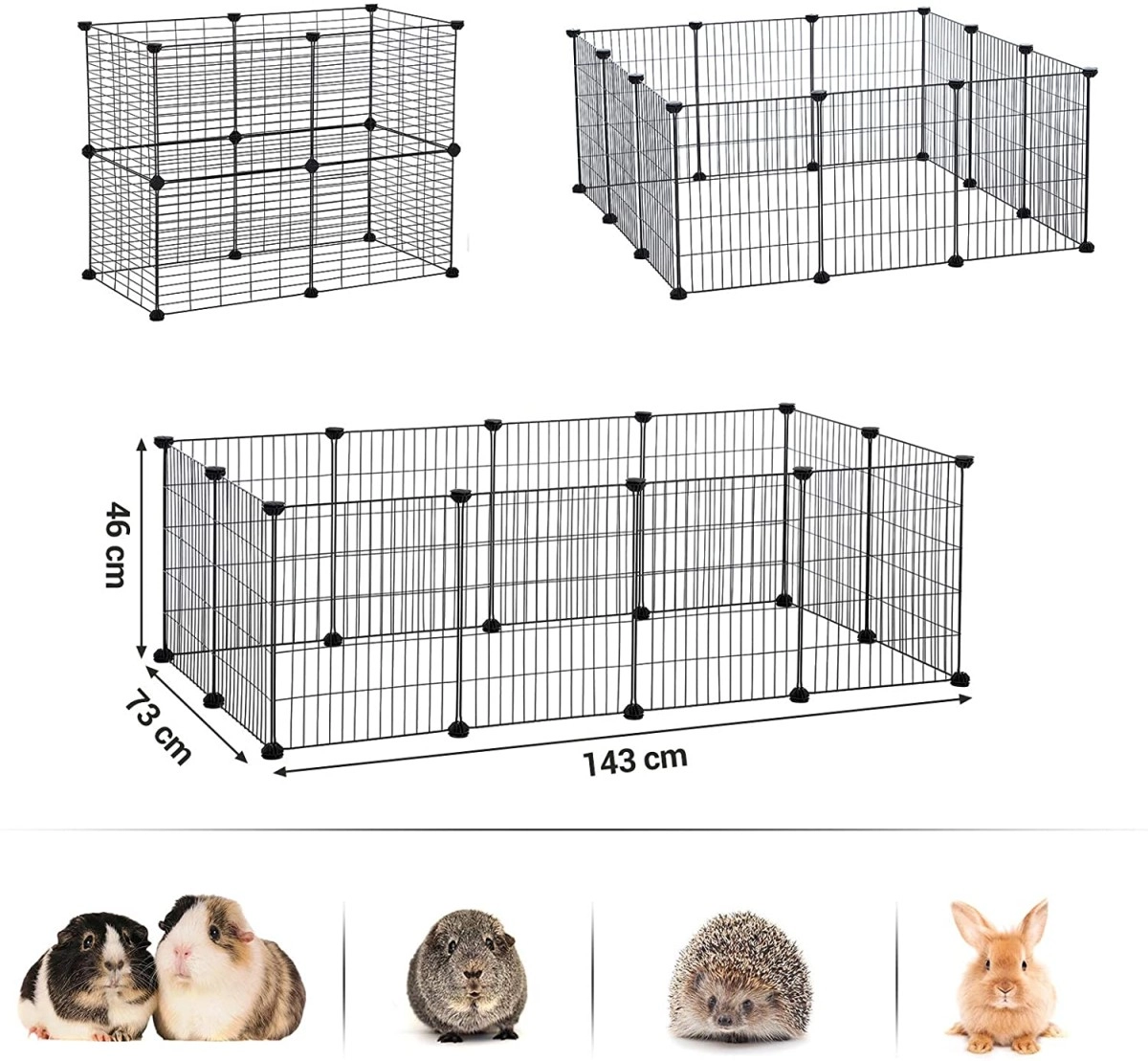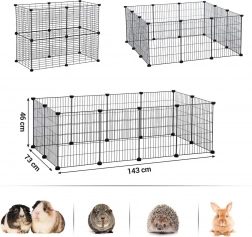 Incinta modulară este soluția perfectă pentru proprietarii de animale de companie care doresc să ofere micuților lor un spațiu sigur și închis acasă. Construcția din plasă metalică cu deschideri de 2,5 cm asigură siguranță și un bun flux de aer. Este potrivită pentru hamsteri, porcușori de Guineea, arici și iepurași pitici. Creează un locușor confortabil pe care animalul tău de companie îl va adora.