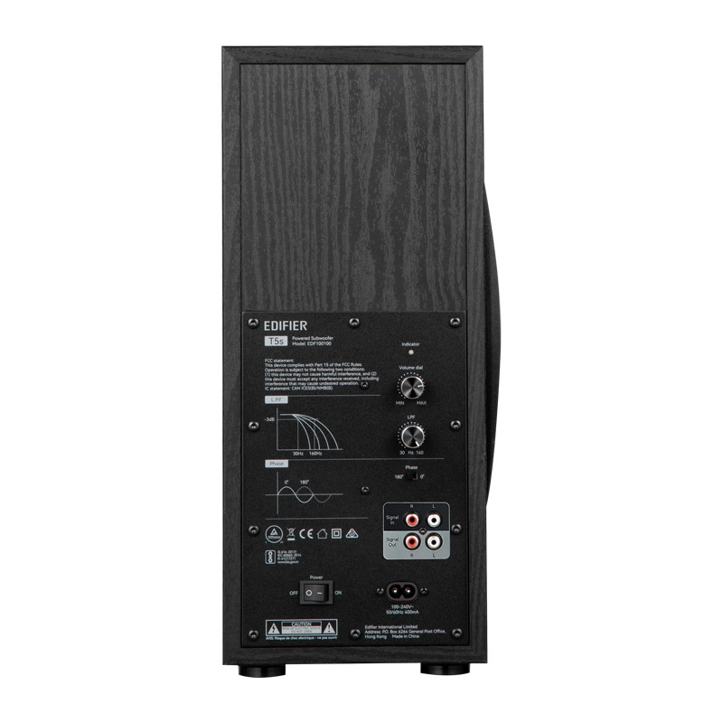 Edifier T5s este completarea ideală pentru orice sistem audio, asigurând adâncimea sonoră cinematografică datorită gamei de frecvență de la 35 Hz. Acest subwoofer cu design elegant oferă nu doar un sunet excelent, ci și valoare estetică pentru interiorul dvs.