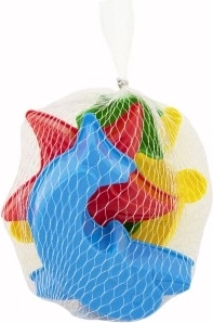 Acest set colorat de forme pentru nisip aduce copiilor multă distracție la construit castele și forme. Cele patru forme cu animale marine susțin creativitatea, imaginația și motricitatea fină. Datorită plasei practice, jucăriile rămân mereu împreună și după joacă se clătesc ușor.