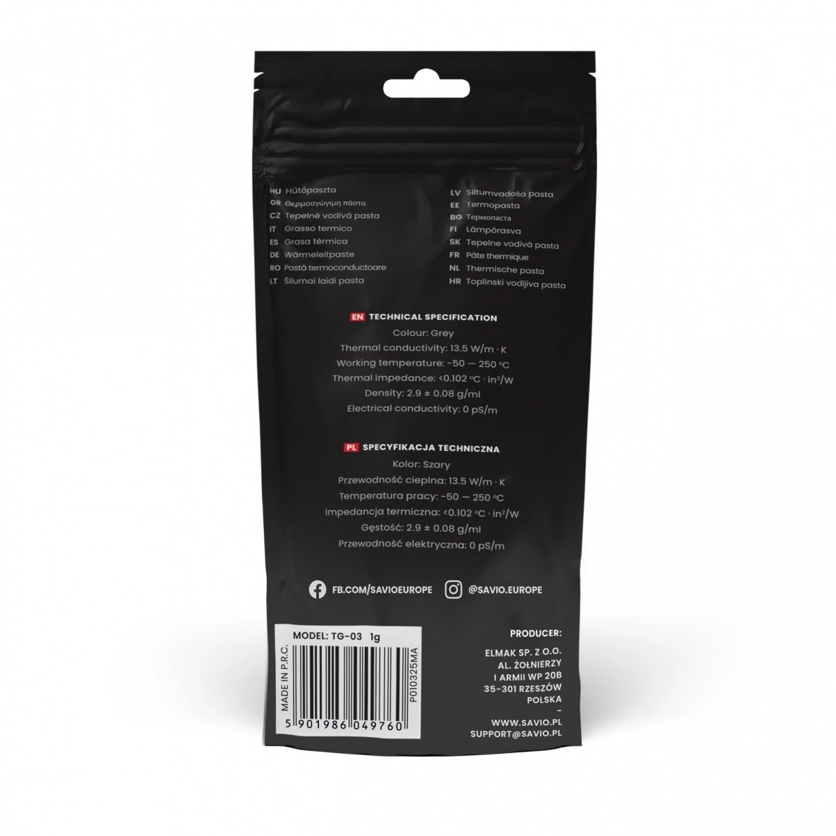 Savio TG-03 este disponibilă în pachete de 1g, 2g și 4g cu ambalaj protector împotriva uscării.<